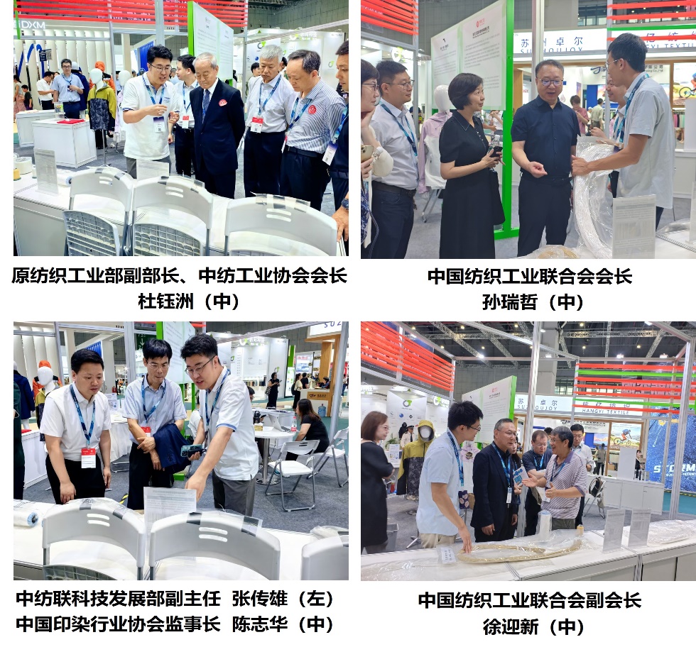 本次展会,英国上市365纤维材料研究中心展出最新产学合作成果,包括芳纶纳米中空纤维膜、纤维增强型聚乙烯中空纤维膜、含氟聚合物纤维及过滤制品等。原纺织工业部副部长、中国纺织工业协会会长杜钰洲,中国纺织工业联合会会长孙瑞哲、副会长徐迎新,中国印染行业协会监事长陈志华等领导专家莅临展位参观指导。此外,展台也吸引了同展东华大学、江南大学、苏州大学、北京化工大学等院校及安踏、山东鲁泰、江苏集萃先进纤维材料研究所等知名企业参观交流。依托本次展会,有力地宣传了英国上市365在科研团队搭建上的支持以及最新研究成果,拓展了我校在纺织行业的影响力,同时,通过参展更直观的了解到纺织行业在纤维材料与服用面料等领域的最新发展方向,助力学科发展。