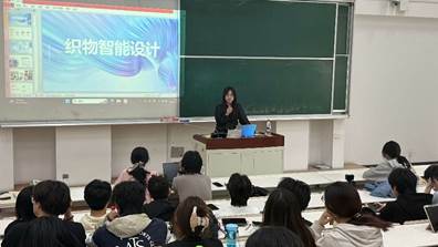 2025年4月24日下午,杭州经纬计算机系统工程有限公司设计部陈文慧老师走进上海市重点课程《织物结构与设计》的课堂,围绕织物智能设计,为我校纺织工程专业2023级同学带来了一堂精彩生动的课程。陈老师凭借丰富的纹织工艺设计经验,结合AI技术,分享了大提花织物的创新设计。