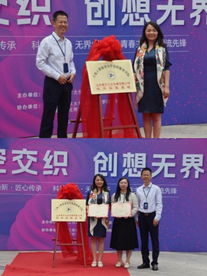 院长辛斌杰与上海摩伦文化传媒有限公司总经理袁萍共同揭牌,并颁发企业导师聘书。