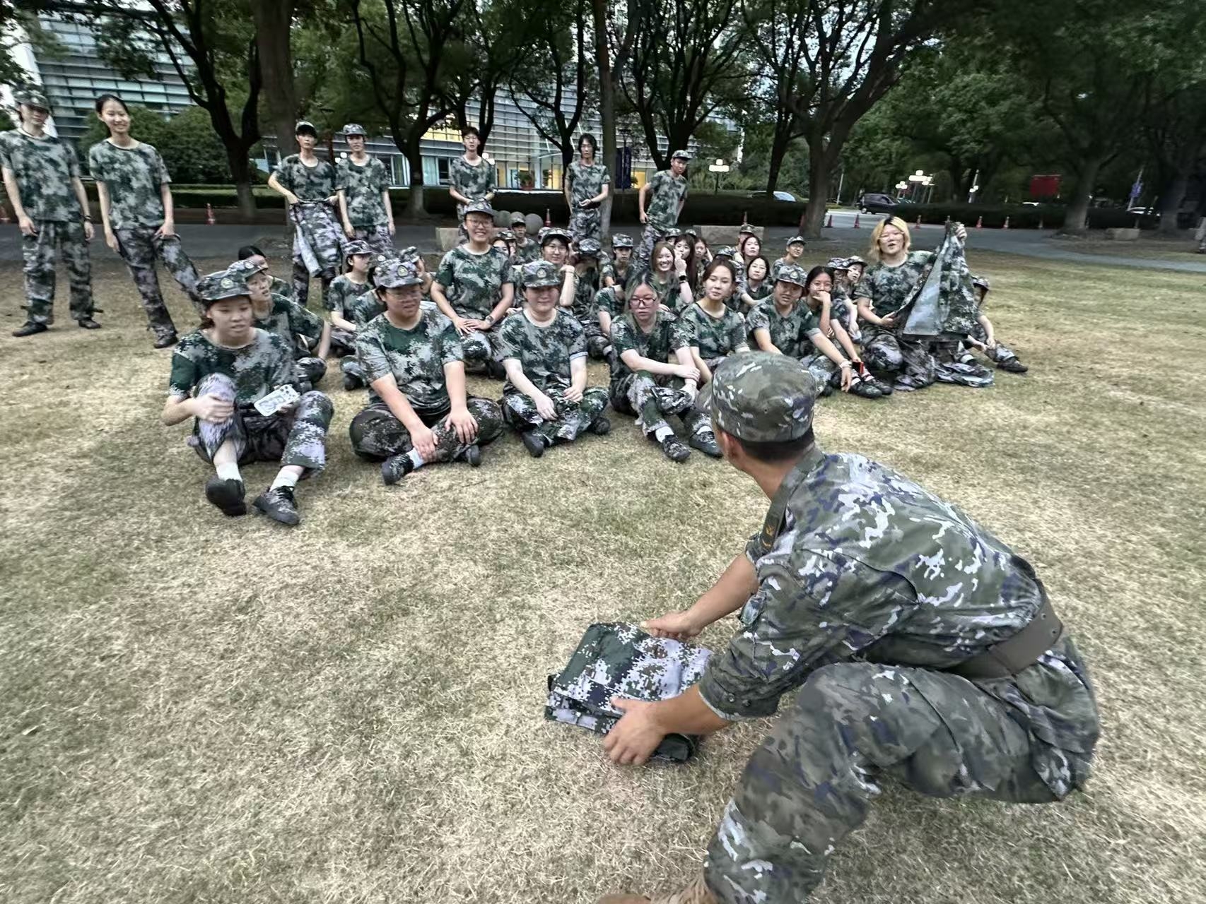 休息间隙,同学们围坐在一起,相互分享军训的感受,彼此鼓励。原本陌生的面孔,在这短短半天的相处中,渐渐熟悉起来,集体的凝聚力悄然增强。