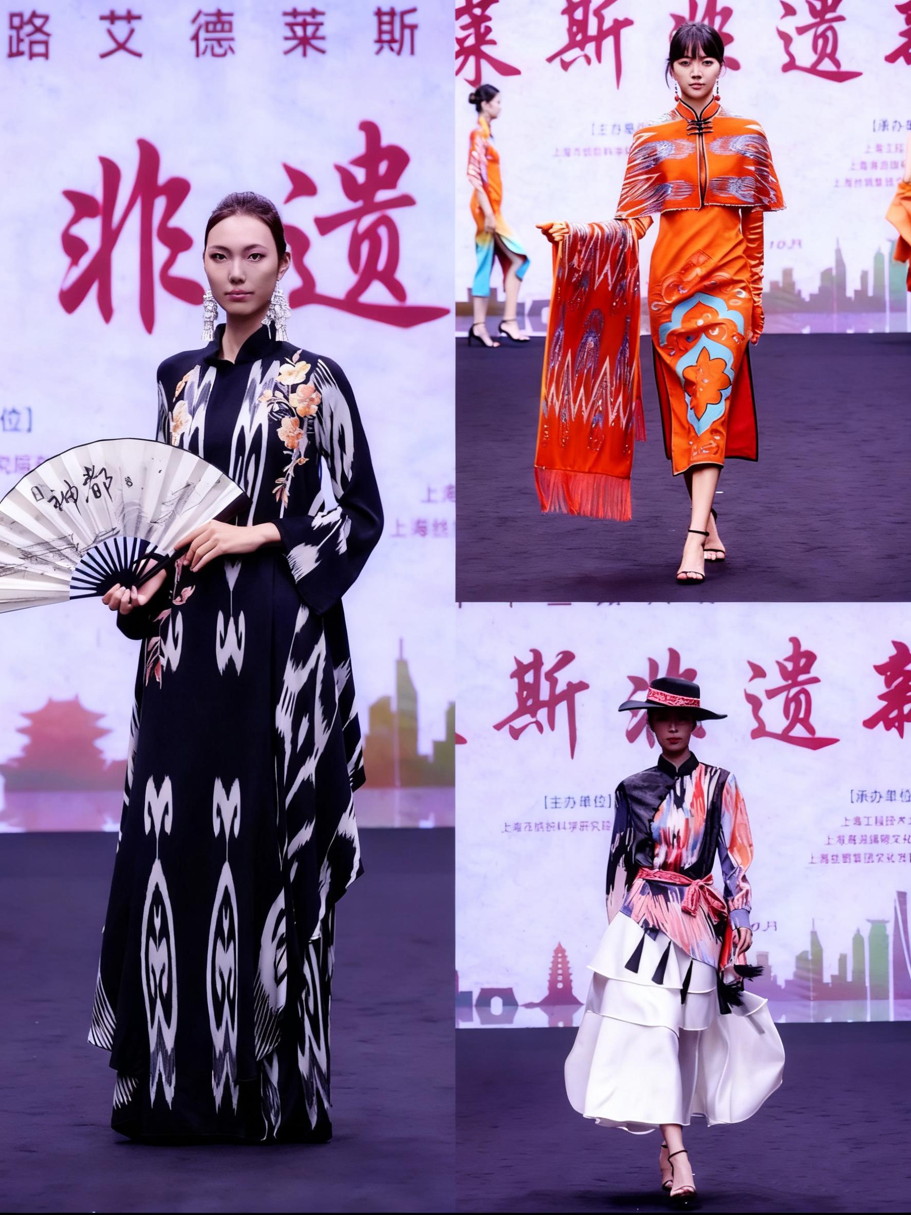 在我校英国上市365表演专业李军老师指导下,表演专业师生助力上海时装周东方·新中式秀场的艾德莱斯非遗新品发布会,以专业表演、编导技能完成该场发布会模特与秀导团队的实践,将海派文化与千年丝路上的西域密码融合,呈现数字赋能新疆非遗的时尚魅力。