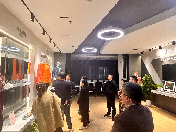 交流会上,嘉麟杰公司相关负责人详细介绍了企业的发展历程、核心业务、战略规划以及当前企业发展情况。学院教师深入参观了企业的现代化生产车间、研发中心和产品展示厅,了解了从纤维原料到高端成品的完整生产流程,以及企业在高性能面料等领域的成果。