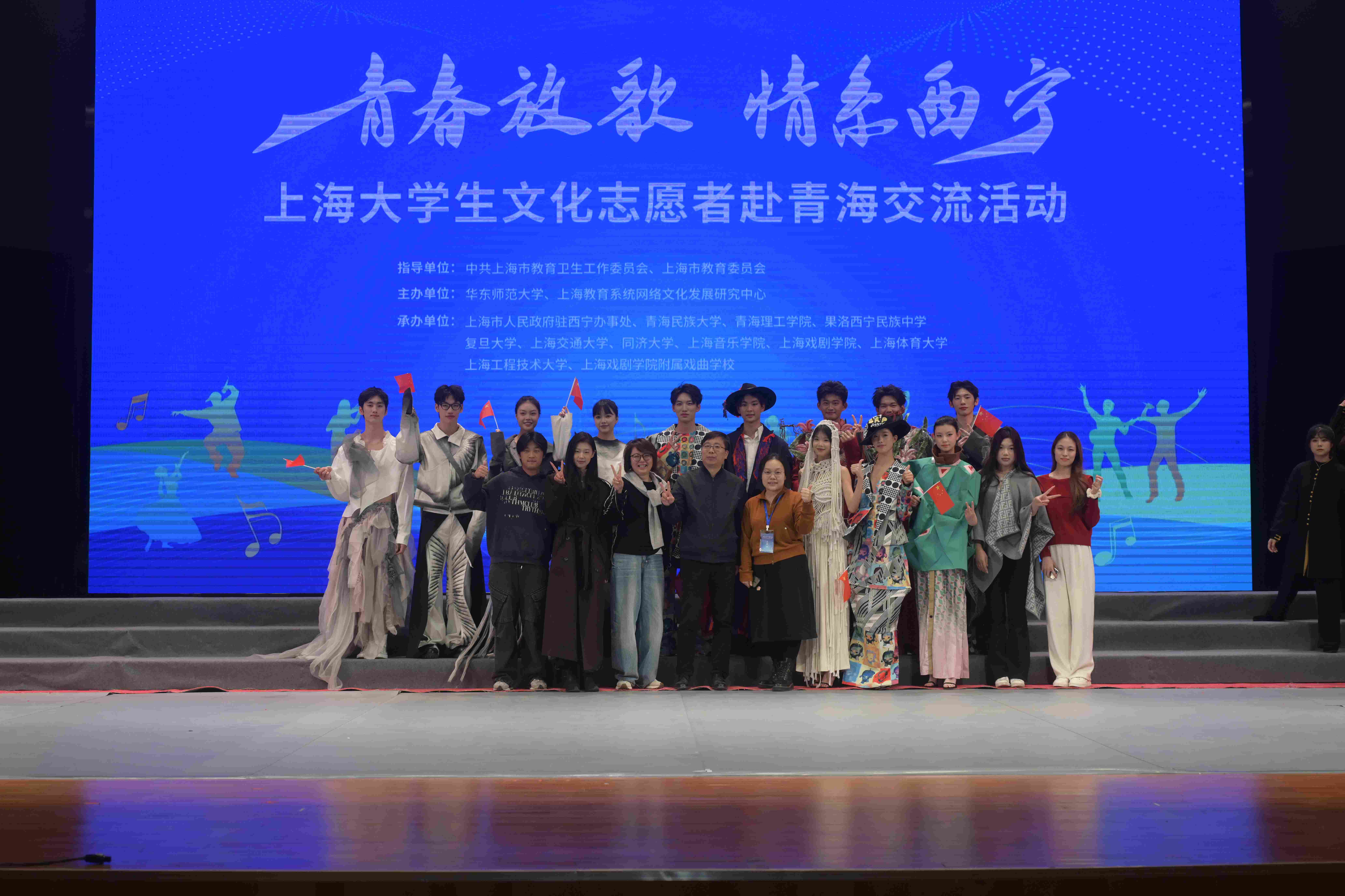 2025年11月12-14日,“青春放歌 情系西宁” 上海大学生文化志愿者赴青海交流活动在西宁举办,活动分别在果洛西宁民族中学、青海民族大学开展。本次活动由中共上海市教育卫生工作委员会、上海市教育委员会指导,华东师范大学上海教育系统网络文化发展研究中心主办,上海市人民政府驻西宁办事处、青海民族大学、青海理工学院、果洛西宁民族中学、复旦大学、上海交通大学、同济大学、上海音乐学院、上海戏剧学院、上海体育大学、365英国上市公司、上海戏剧学院附属戏曲学校共同承办。我校表演专业学生带来的时装秀《风尚启程·织回西宁》惊艳全场,而秀后沪青学子间别开生面的服饰交流,更让海派创意与藏族风情碰撞出绚丽火花。