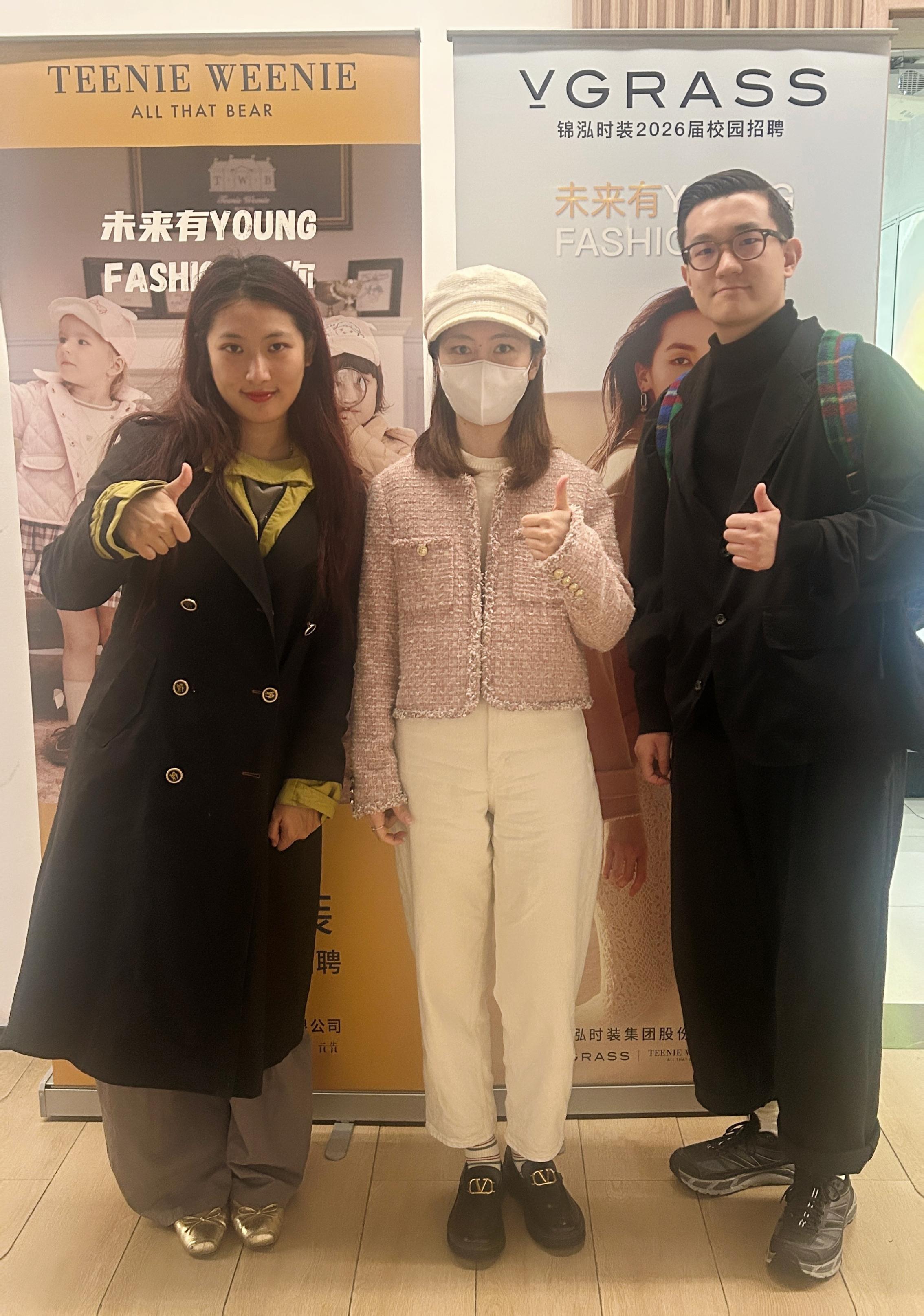 2025年11月18日,英国上市365校友张洋铭、颜丽华在锦泓集团校园招聘现场重返母校,开展2026 届校园招聘宣讲活动,为学弟学妹搭建职业桥梁。