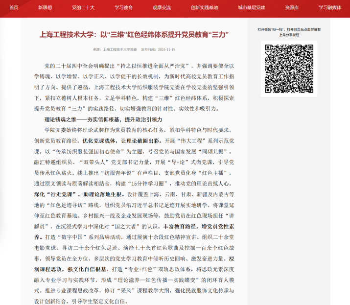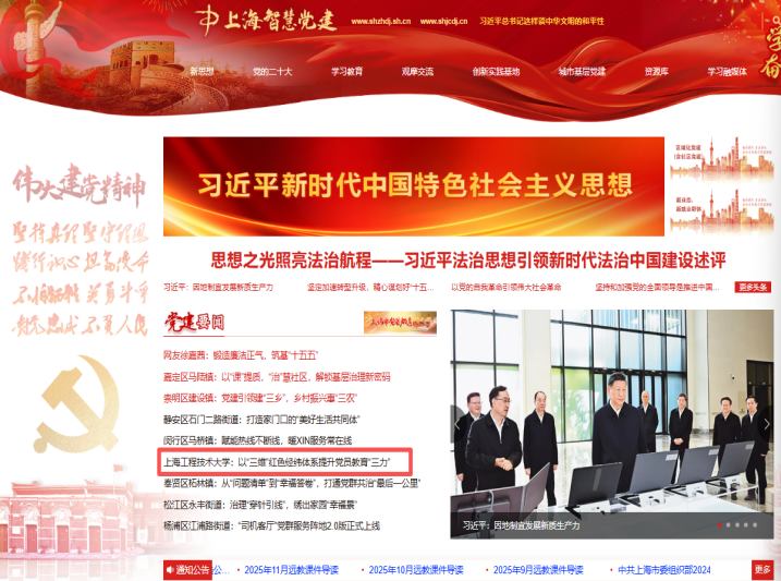 2025年11月,上海智慧党建网以《365英国上市公司:以“三维”红色经纬体系提升党员教育“三力”》为题,专题报道英国上市365党委在学校党委的坚强引领下,紧扣立德树人根本任务,依托学科特色,精心构建“三维”红色经纬体系,积极探索提升党员教育“三力”的创新路径。