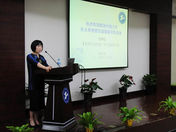 4月27日,服装学院邀请韩国中部大学崔永舜教授授课讲座,主题为“韩国时尚创意产业与服装教育”,服装学院副院长陈莹教授主持了本次讲座。服装设计专业相关系主任、教师、研究生及本科生积极参与了本次讲座活动。