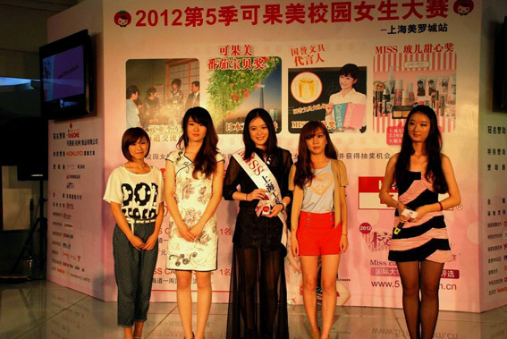 5月12日下午,我校服装学院陈君彦、管理学院吴烨杉、服装学院王莹、服装学院崔婧仪和管理学院邵校等选手,参加了在徐家汇美罗城五番街隆重举行的全国第五季校园女生大赛上海赛区总决赛。来自上海十几所高校的五十位校园佳丽一起参加了比赛。