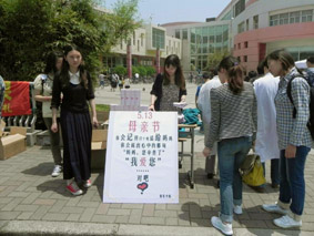 阳光灿烂的五月暖风拂面,在这亲情融融的季节里,我们又一次迎来了“母亲节”。为了弘扬尊敬长辈的传统美德,5月11日中午,服装学院在师生活动中心前开展“创先争优,感恩母亲”的母亲节关爱活动。