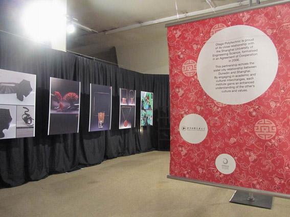此次展览位于丹尼丁市中心展区,展览内容广泛,涉及服装、服饰设计、广告装潢设计、建筑设计等,吸引了当地时尚界人士、该校学生及时尚爱好者们。奥塔哥理工大学专为我校开辟了一块单独展区,入口处的设计颇具中国传统折纸艺术风情,展区内的巨幅服饰品设计实物海报和建筑、工业设计效果图海报展出了我校近期各类优秀作品与获奖作品。