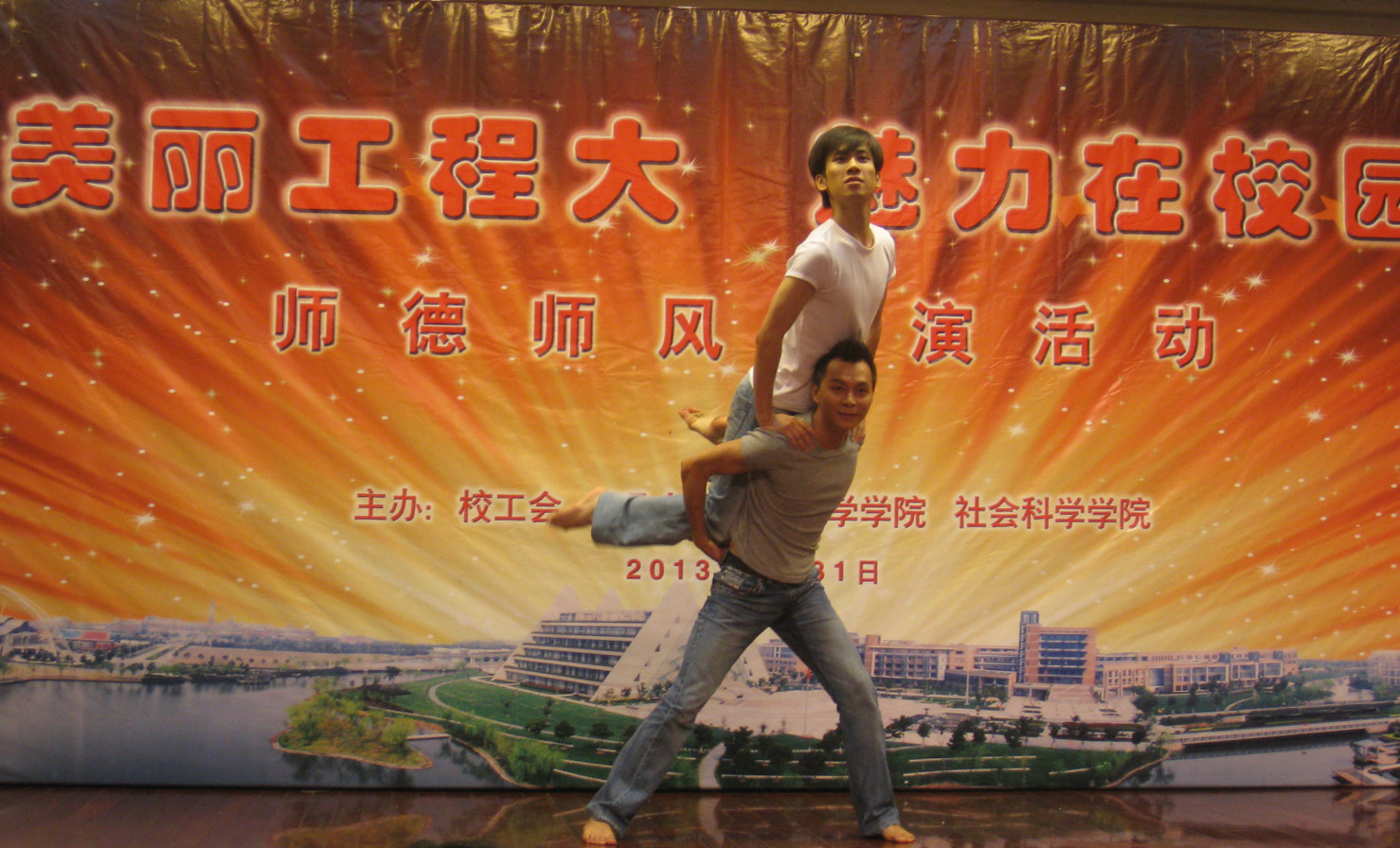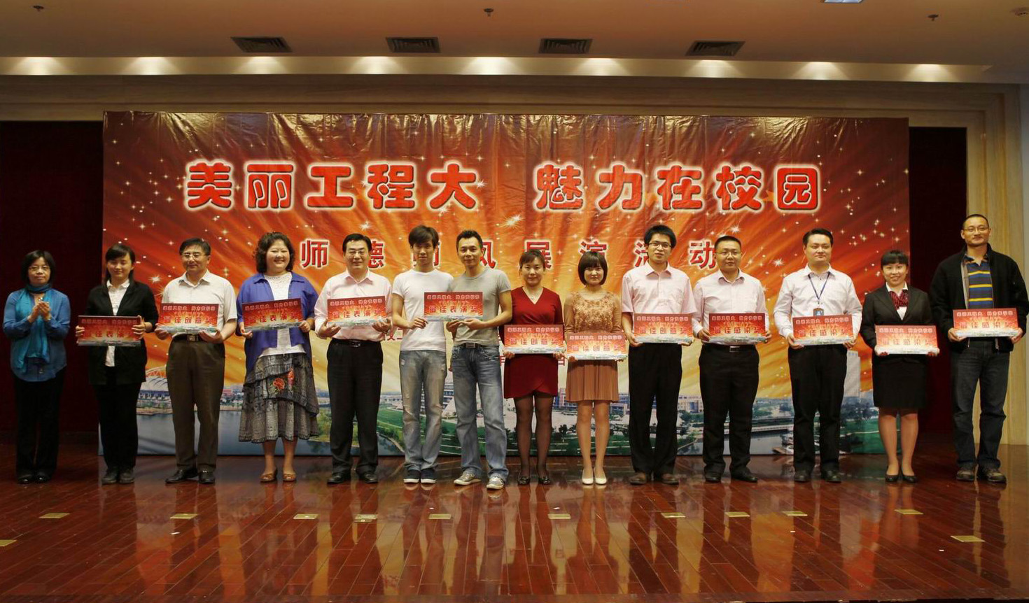 5月31日下午,我院参见了由校工会主办的“美丽工程大·魅力在校园”师德师风主题展演活动,活动在图文信息中心第二报告厅举行。校党党政主要领导和校工会领导出席了活动,本次师德师风主题展演活动共有来自全校18个学院(部门)的90位选手参加。活动以舞蹈、朗诵、演讲、歌曲、小品、舞台剧、话剧、器乐等多种形式呈现。代表我院参加展演的节目是有潘华栋老师主编主演的《你的青春我来舞》,他带领他的学生以舞蹈的形式展示了老师为人师表、无私奉献的崇高师德,优美的舞姿赢得了参加活动的300余位师生代表一阵有一阵的掌声,他们的表演征服了来自全校20个学院(部门)的党政领导担任的评委,给予了表演的最高分,获得了最佳表演奖。服装学院工会组织部分教职工代表观摩了表演,为参加表演的演员鼓掌助威,并获得最佳组织奖。