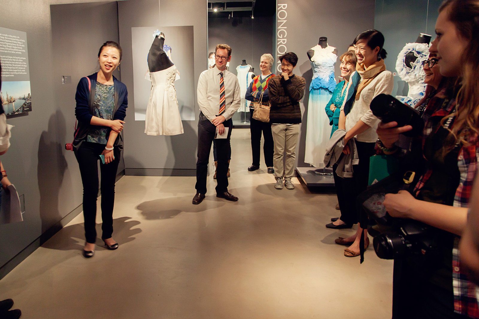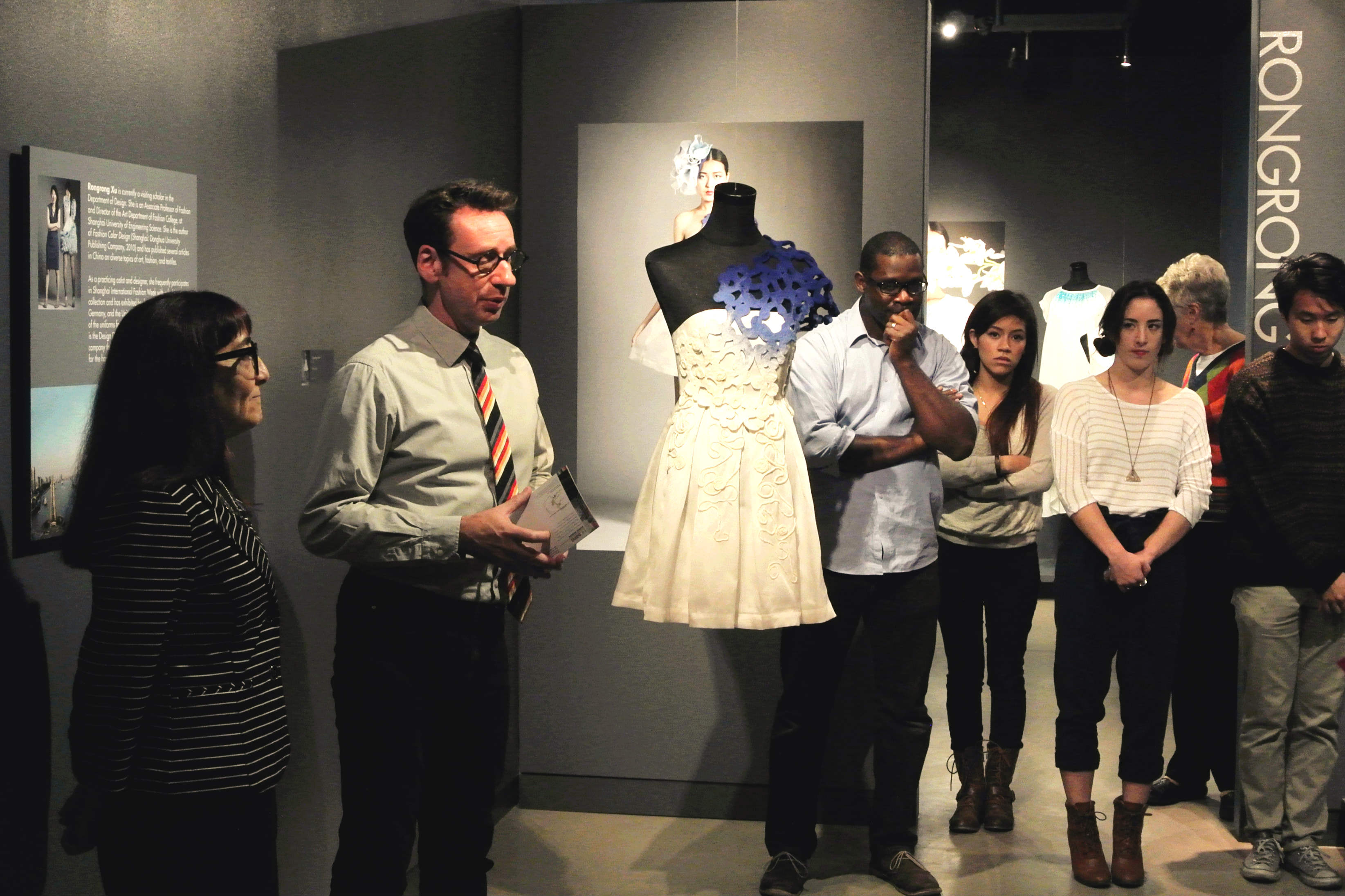 美国当地时间2013年10月16日18:00,服装学院徐蓉蓉副教授利用国外访学期间在美国加州大学设计艺术中心展出了她近期创作的10套服装设计作品。此次展览由我校服装学院和加州大学戴维斯设计学院联合举办,展览将持续到12月10日。