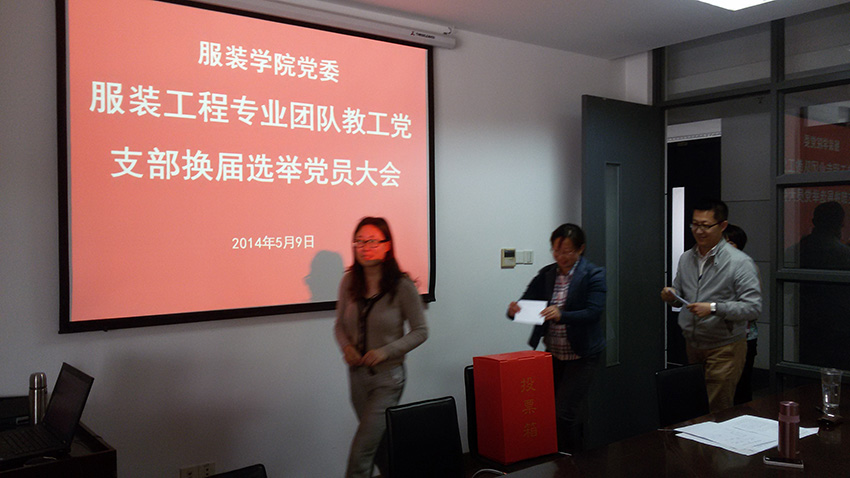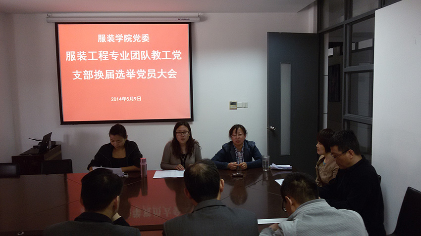 服装工程专业团队教工党支部于2014年5月9日举行党员大会选举, 7名党员参加,实到会人数超过应到会人数的五分之四,服装学院党委委员宋晓霞出席了本次会议。