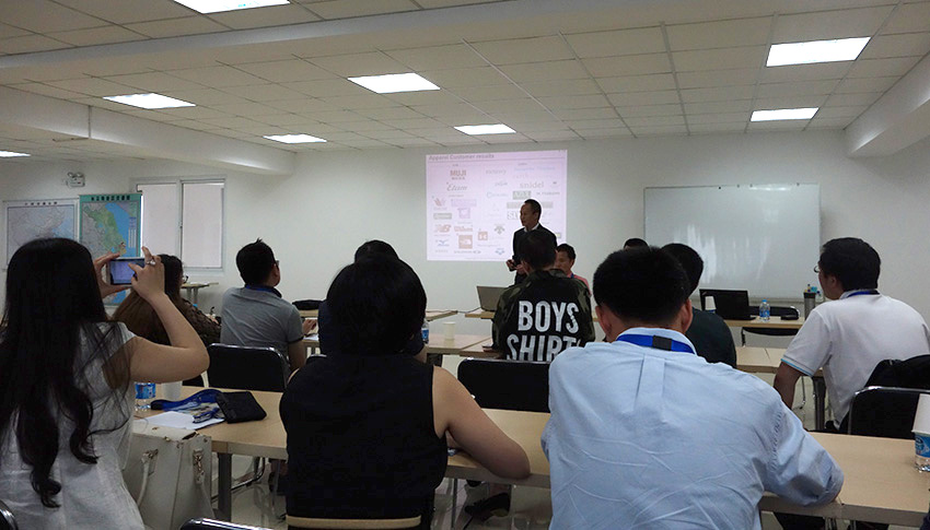 接下来,研讨会进入了气氛更加热烈的讨论环节。司马总经理分享了他非常精彩的对于公司业务及时尚行业的见解。其中他从物流角度谈对时尚产品的理解,让在场所有的人为之折服:“时装是生鲜食品:我们的任务是把这些生鲜食品尽量快、完整地呈送到顾客的手中。虽然我们做的是物流,但是我们可能比任何服装客户更能了解时装的本质。这些生鲜“食品”最怕的是变质,时间的流逝会影响服装的观感、形态和触感……”。受精彩发言的影响,与会者纷纷踊跃发言,就时尚产品物流相关问题展开了非常激烈的讨论。讨论结束之后,公司高层引导与会者参观了物流园区。