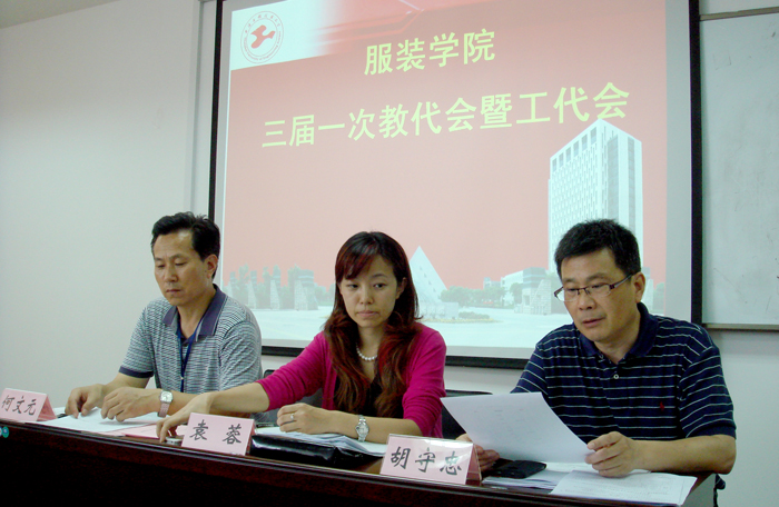 7月9日下午,服装学院三届一次教代会暨工代会闭幕式在艺术楼A218室隆重召开。院党委书记袁蓉、院长胡守忠、院工会主席何文元等参加了大会,会议由工会主席何文元主持,来自学院各系部的24名代表参加了大会,学院全体教职工列席了会议。