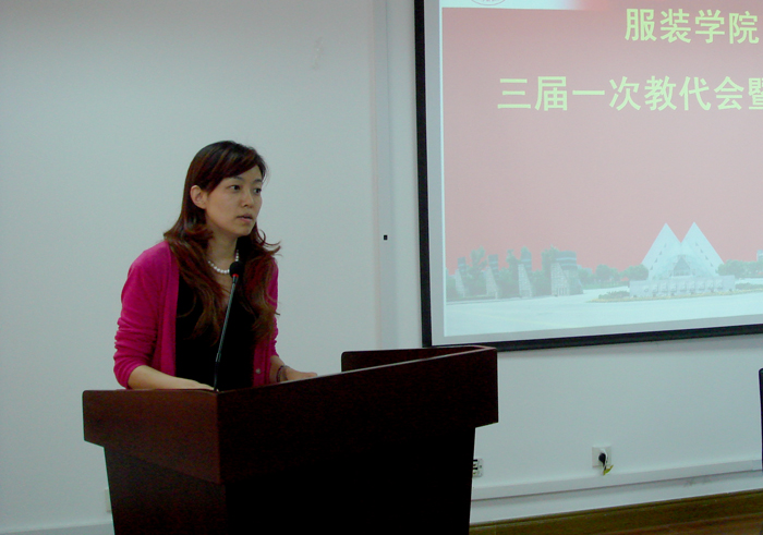 会议进入到下一个议程,由院工会副主席步文捷向大会作服装学院工会2013年工作报告和工会经费使用情况报告。报告以围绕学校中心工作,推进“服饰礼仪、美丽小家为特色的教工之家”建设为抓手,从七个部分以图文并茂的形式回顾了院工会去年一年的工作,得到与会代表的热烈的响应。