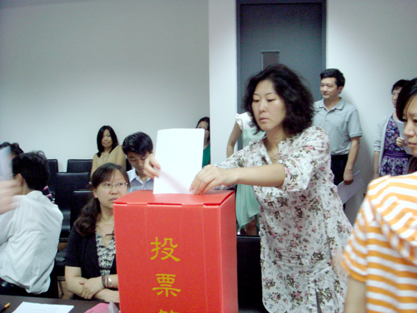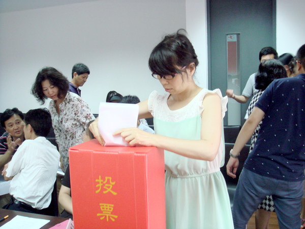 随后大会以无记名投票方式表决《服装学院岗位业绩津贴分配及绩效考核办法》,在学院全体教职工的见证下获得高票通过。