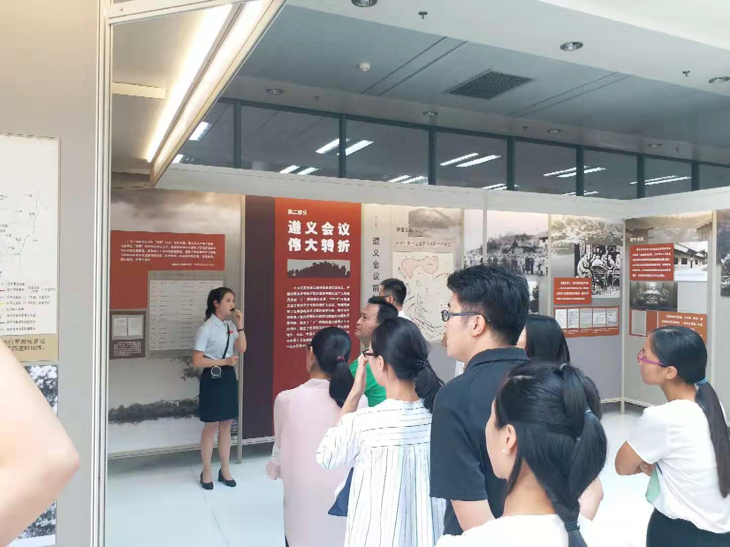 展区主要分为“战略转移开始长征”“遵义会议伟大转折”“转战贵州出奇制胜”“勇往直前走向胜利”“遵义会议精神永存”五个部分在讲解员的带领讲解下,党员们在一幅幅珍贵的图片资料中进行深刻感悟和学习,感慨红军长征胜利的来之不易。从四渡赤水、巧渡金沙江、飞夺泸定桥、翻越皑皑雪山、穿越茫茫草地,在一个个历史事件中驻足沉思。遵义会议,是我党历史上一个生死攸关的转折点是中国共产党第一次独立自主地运用马列主义基本原理解决自己的路线、方针和政策的会议。