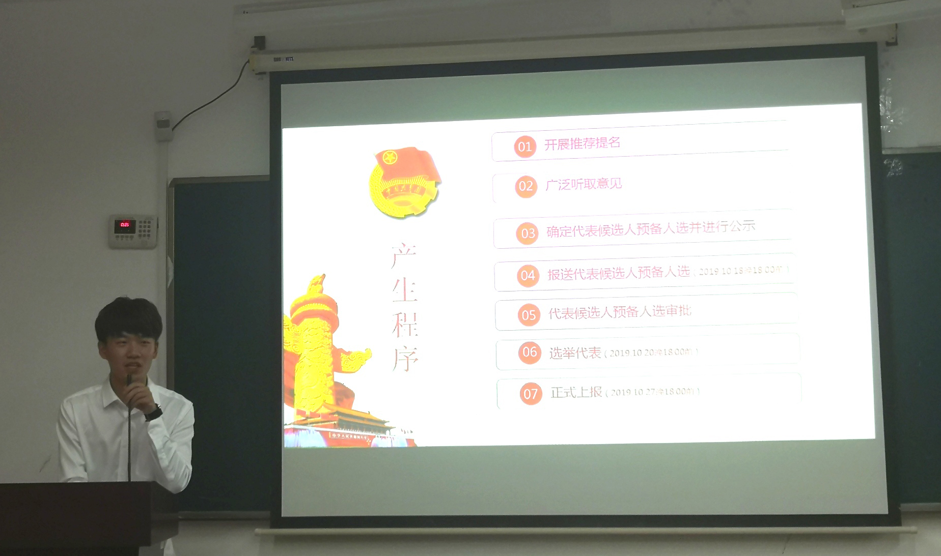 随后,赵桐老师向在场团代表们介绍了团代会代表人选举流程、公布了代表候选人提名人选名单,以及服装学院团代会代表人产生方式和名额分配。