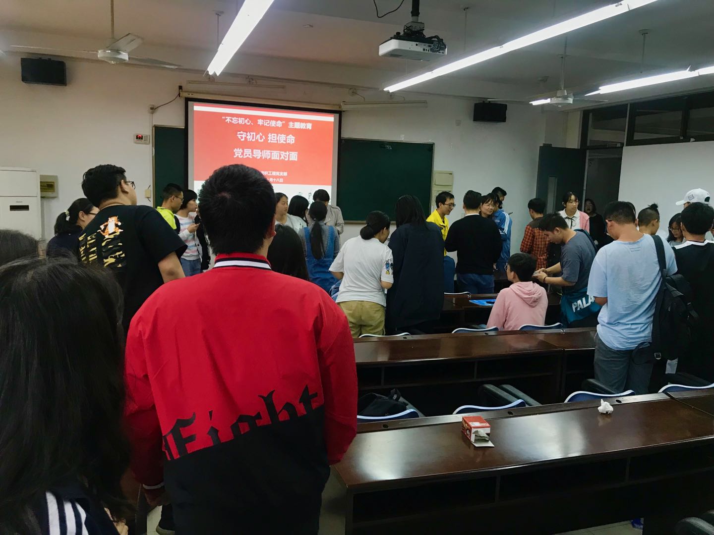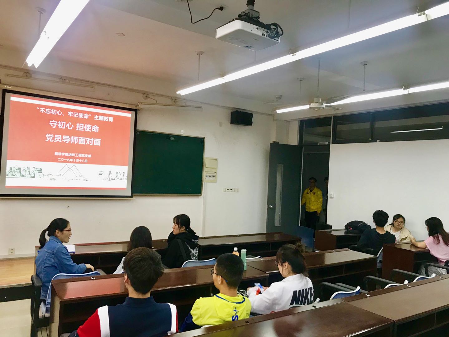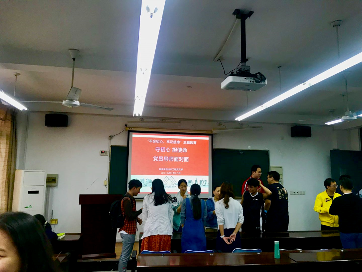 20191018日,纺织工程党支部在艺术楼C310举办“不忘初心、牢记使命”主题教育——守初心、担使命,党员导师面对面活动。党支部的所有党员教师和201948名本科生参加了本次活动。