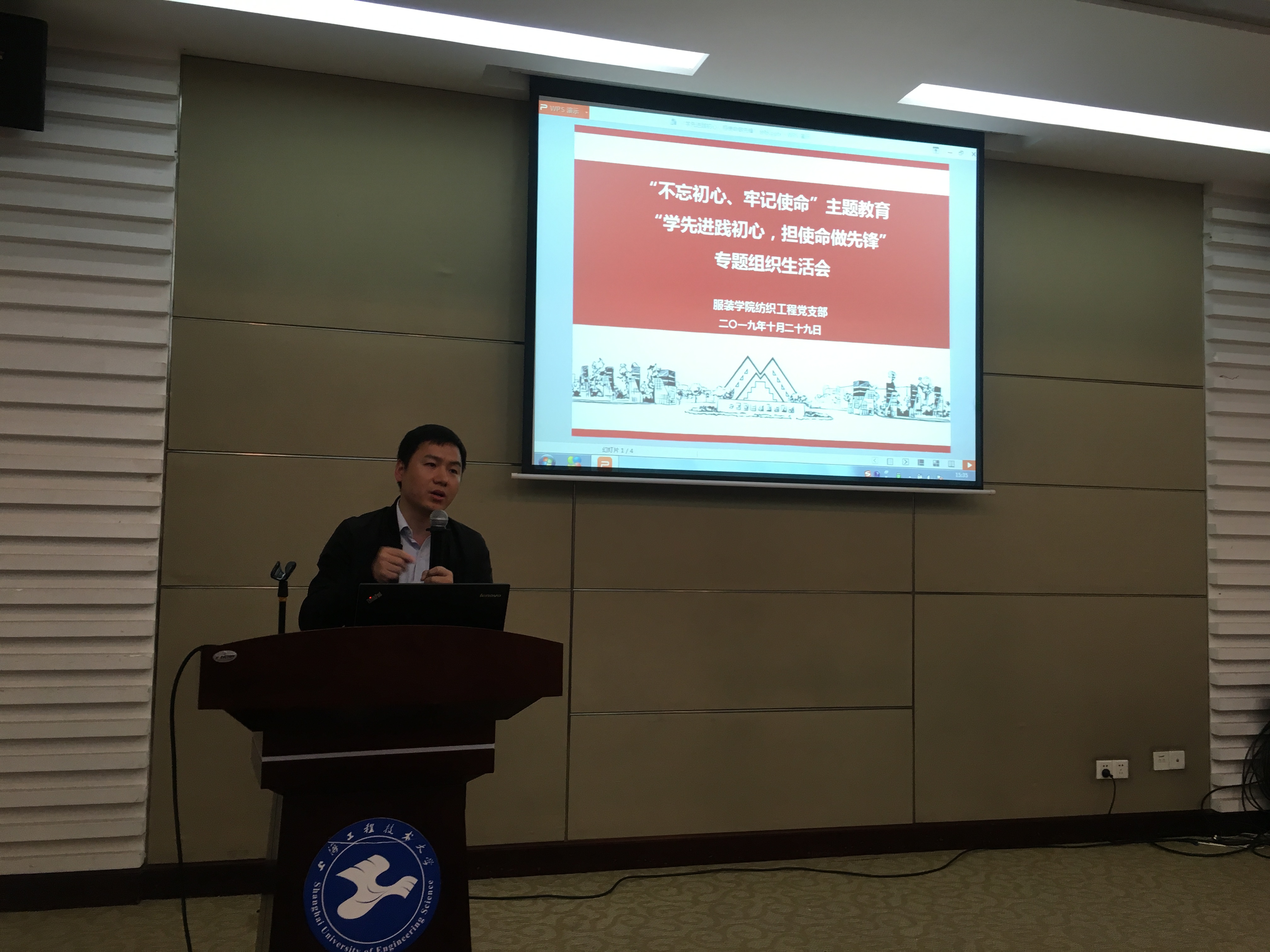 为推动"不忘初心、牢记使命"主题教育进一步往深里走、往心里走、往实里走,20191029 日 下午13:30服装学院纺织工程党支部在图文四报召开了“学先进践初心,担使命做先锋”专题组织生活会。纺织工程专业的本科生、研究生党员及入党积极分子参加了本次活动,服装学院其他党支部师生代表前来进行了观摩。市委第七巡回指导组万世东老师在校组织部顾守进老师的陪同下莅临指导。