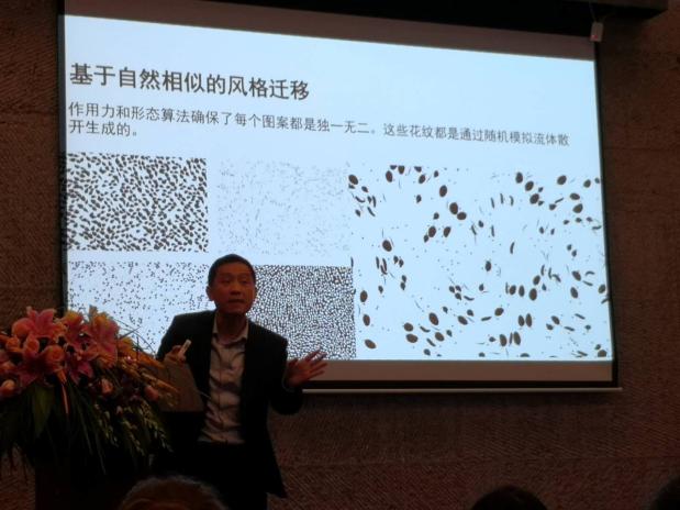 在杭州象山水岸山居大会议室,大家参与2019国际纹样创意设计大赛颁奖典礼暨纹样之文化解读研讨会。组委会邀请了国内外知名专家学者围绕“纹样之文化解读”学术命题进行演讲,发言环节涉及“艺术与科技”、“基于AI风格迁移的图像设计”、“设计留白”等学术观点,并通过问答环节,提出了“先进手工艺在时尚设计中的隐性价值”等研究课题。