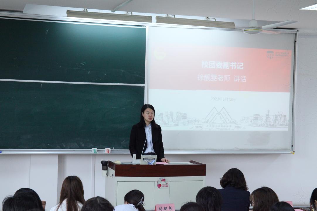 校团委副书记徐靓雯希望大家珍惜此次学习机会,树立正确的学习态度,以习近平新时代中国特色社会主义思想为指导,胸怀远大理想,牢记五四精神,立志做有理想、敢担当、能吃苦、肯奋斗的新时代好青年,她对学院团员青年提出四点要求:一是要有理想,要胸怀祖国、志存高远、提升素质、锤炼品格;二是要敢担当,要牢记使命、勇于担当、敢作敢为、善做善为;三是要能吃苦,要有志愿服务意识和服务精神,无私奉献,提升自我;四是要肯奋斗,要不负时代、不负韶华、坚定信念、踊跃投身。并祝愿各位学员在学习期间学有所成,收获知识、收获友谊、收获成长。
