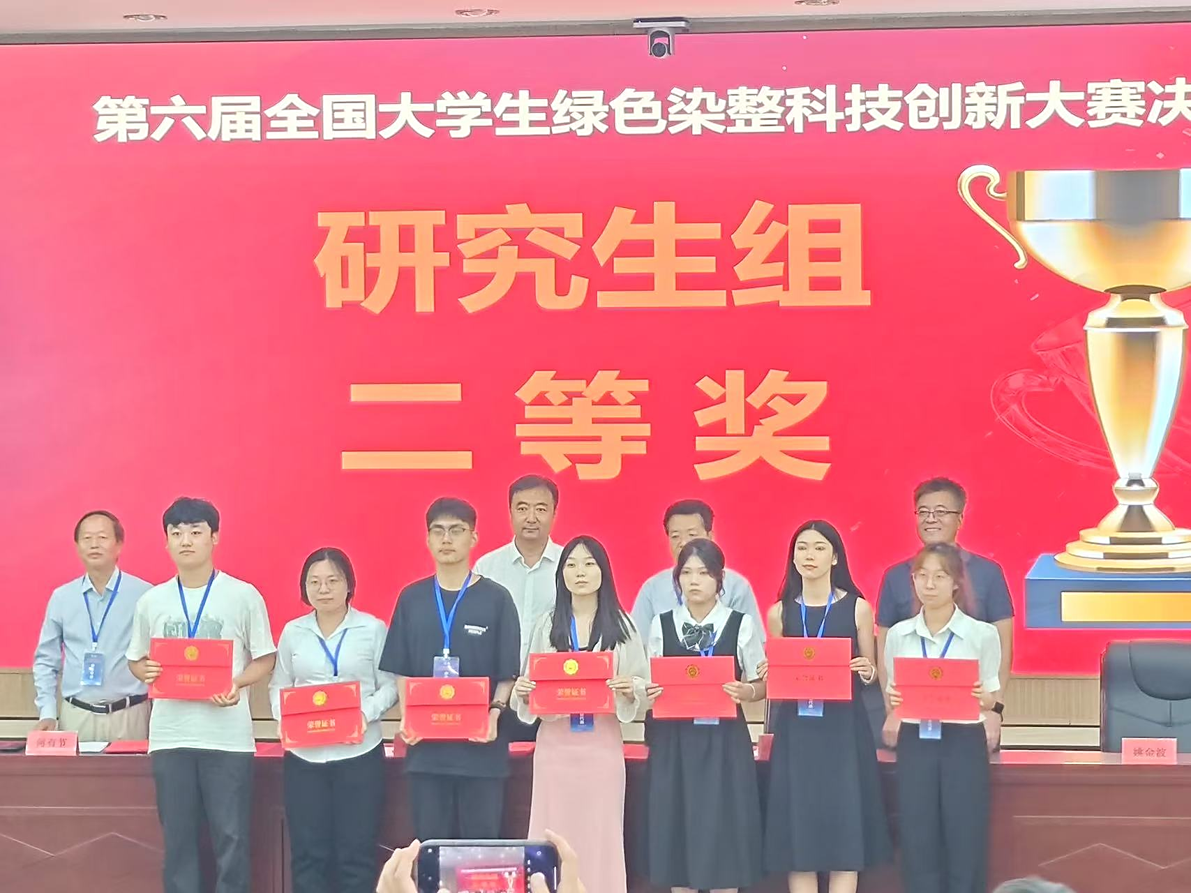 As a concrete initiative to implement the guiding principles of the 20th CPC National Congress on “promoting green development and fostering harmony between humanity and nature,” the National College Students' Green Dyeing and Finishing Technology Innovation Competition has become a vital platform for advancing textile discipline development and stimulating youthful innovation. The sixth edition, themed “Smart Dyeing and Finishing, Green Future,” attracted participation from numerous universities nationwide since its launch in April. Students from our university's School of Textiles and Fashion submitted a total of 15 undergraduate entries and 5 graduate entries. Following an online preliminary evaluation by the expert panel and a rigorous on-site “presentation + defense” round, our university secured 4 second prizes and 2 third prizes in the undergraduate category, along with 1 second prize and 1 third prize in the graduate category.