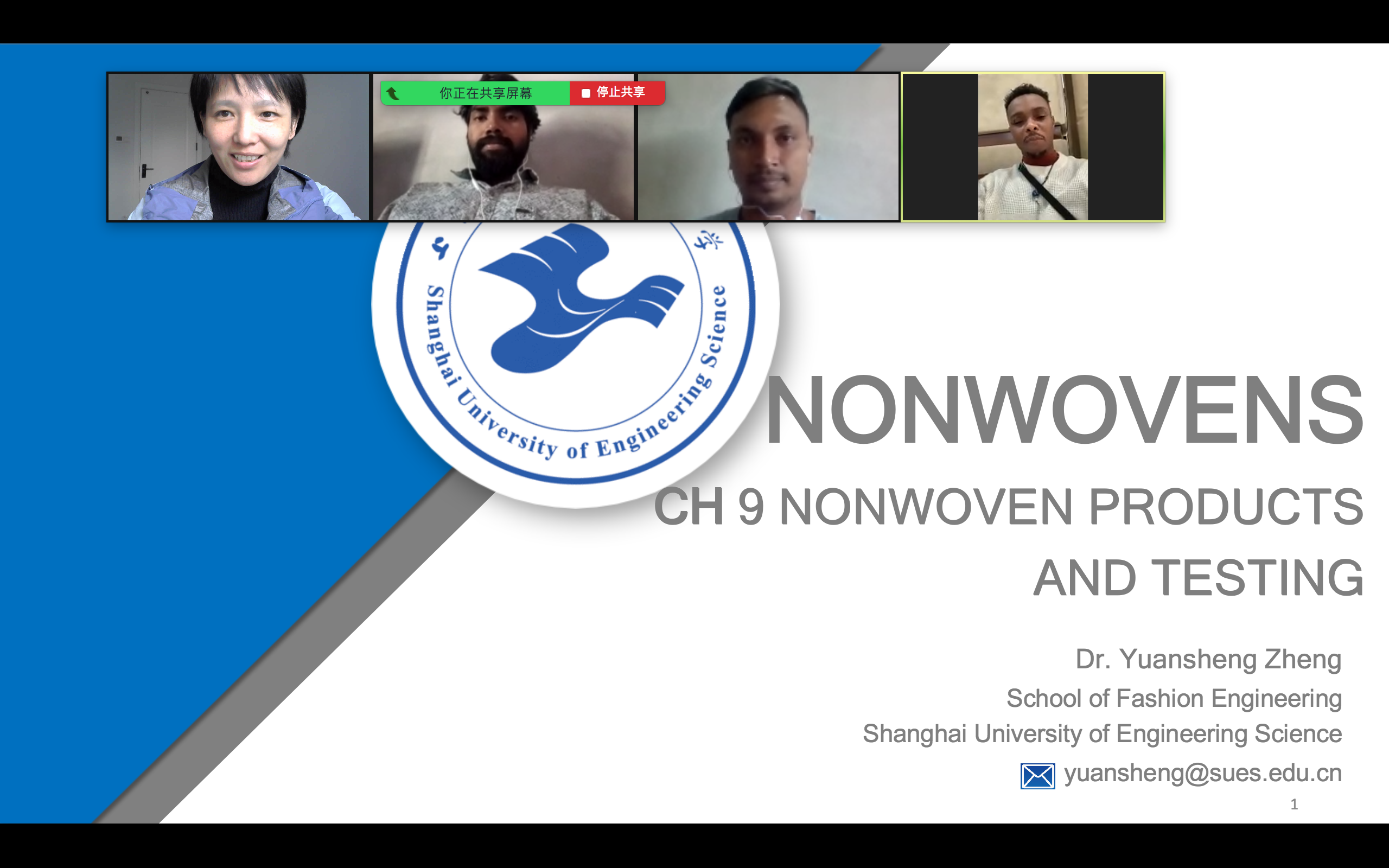 There are 10 full English-taught courses for this program this semester, including 5 textile major courses which are Textile Materials, Introduction to Textiles, Spinning Technology, Nonwovens, and Experiment for Textile Materials, and 5 general platform courses which are Probability and Statistics, Oral Communication, Fundamentals of Computer Drawing, Basics of Computer Application, Mechanical Principles. These 10 international undergraduates come from different countries; therefore, all courses have to be scheduled in the afternoon or evening time to minimize the impact of time difference. All teachers are positive and enthusiastic, they can flexibly use a variety of online platforms and tools, and are always well-prepared for every lesson to ensure the teaching & learning quality. At the same time, a WeChat group for students & lecturers was established for communication of common class issues. In addition, a one-to-one personal academic tutor was also assigned for each student for a better and customized off-class study. By collecting teaching & learning feedback from different sources, the School keeps to know the status of online teaching, always finds and solves problems at the right time, ensuring that the online teaching does not compromise its quality and standards against the pandemic.