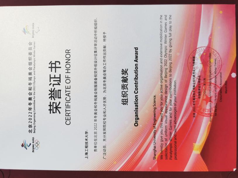 Finally, the No. 068 design proposal “Splendid Light, Colourful World” by the SUES design team stood out and won the Silver Award and Organization Contribution Award. The uniforms will be collected by Beijing Olympic Museum. The design team of our school completed the task entrusted by the National Olympic Committee and made contributions to the Beijing 2022 Winter Olympics and Paralympics.