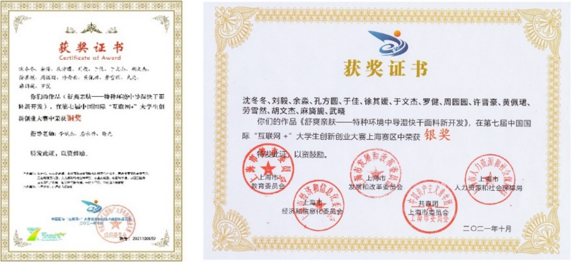 Graduate students have participated in important national, provincial, industry, university, and research projects, as well as various scientific and technological innovation projects, subject competitions, academic conferences, etc. In recent years, they have won nearly 50 provincial and ministerial level or above awards, including the second and third prizes in the National Graduate Mathematical Modeling Competition, the second prize in the Shanghai Challenge Cup University Student Extracurricular Academic and Technological Works Competition, and the bronze medal in the National "College Student Challenge Cup". Multiple graduate students have won national scholarships, National Textile Excellent Master's Thesis Award, and Shanghai Excellent Master's Thesis. Some students are pursuing doctoral studies at renowned universities such as Hong Kong Polytechnic University, University of Macau, and Tung Wah University. In the past three years, graduate students have published over 460 academic papers, including 100 papers indexed in SCI/EI journals and 71 national patents.