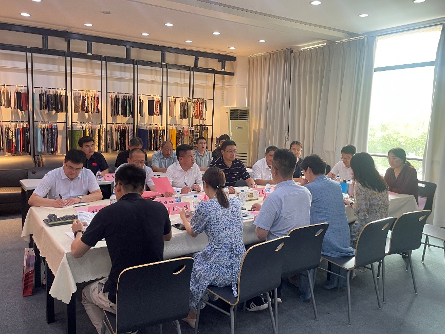 Secretary Zhu Junxuan firstly expressed her warm welcome to the delegation from Huimin County and introduced the basic situation of the College of Textiles and Clothing and its scientific research papers, patents and projects, emphasizing that the College attaches great importance to the needs of enterprises and the cooperation between the College and enterprises in the field of production, learning and research. Mr. Qu Hongjian, vice president of the college, made a general introduction of the scientific research directions and achievements of the college's departments and high-level teams, so as to carry out specific technical exchanges with the delegation. Sun Gaoliang, deputy director of the Bureau of Industry and Information Technology of Binzhou City, and Zhang Qinglin, vice mayor of Huimin County, made an introduction of the purpose of the visit and the projects to be discussed in focus. The two sides then discussed the cutting-edge technology of rope net industry, cost, fiber materials, membrane materials, textile dyeing and other issues.