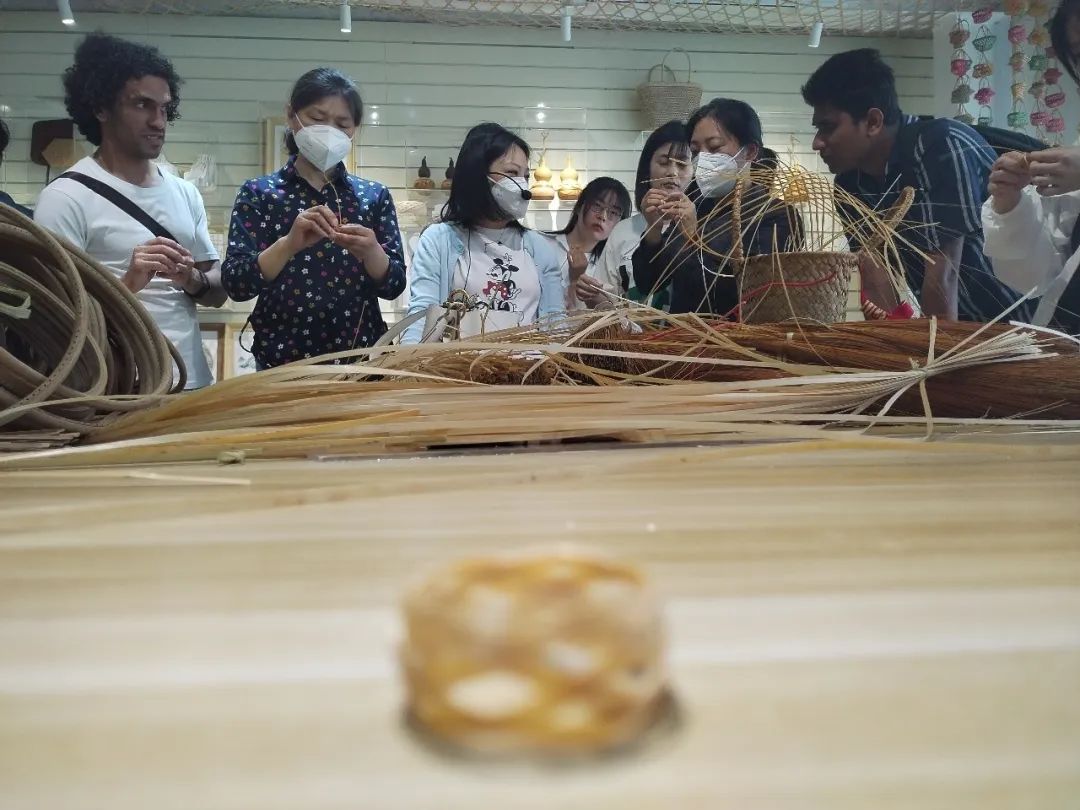 The international students visited Fo Du Xuan. The founder, Ms. Cheng Li, is a bamboo weaving inheritors and a master of arts and crafts in Shanghai. Her works have won many awards at home and abroad and have been collected by many institutions and famous collectors.Ms. Cheng introduced the spread of bamboo culture and the inheritance of bamboo weaving skills.Non-heritage bamboo weaving makes full use of the material beauty of bamboo itself, and weaves the profound and enlightening Buddhist thought through the folk customs lasting for thousands of years with the bamboo thread endowed with spirituality through special techniques.It shows the unique aesthetic taste of Chinese culture and sublimates its artistic value naturally.Ms. Cheng also specially taught the international students to weave bamboo woven rings.The small ring seems simple, but it actually contains a huge bamboo weaving secret, which is one of the necessary skills for bamboo weaving.The students not only experienced simple bamboo weaving techniques and understood the basic technology of bamboo weaving, but also felt the charm of intangible cultural heritage more intuitively and profoundly.