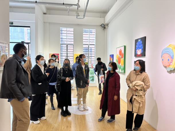 After walking out of the Shanghai Textile Museum, we walked into the M50 Creative Park located at 50 Moganshan Road to feel the charm of the integration of the old textile factory and modern art.First, we visited the latest exhibitions "UPUPUP" and "Preparing for Tomorrow" in the eight galleries, which inspired the students to create.Next, the students and teachers experienced the creation of brushless painting, and after learning the color matching skills and production methods, they created a unique fluid painting art.