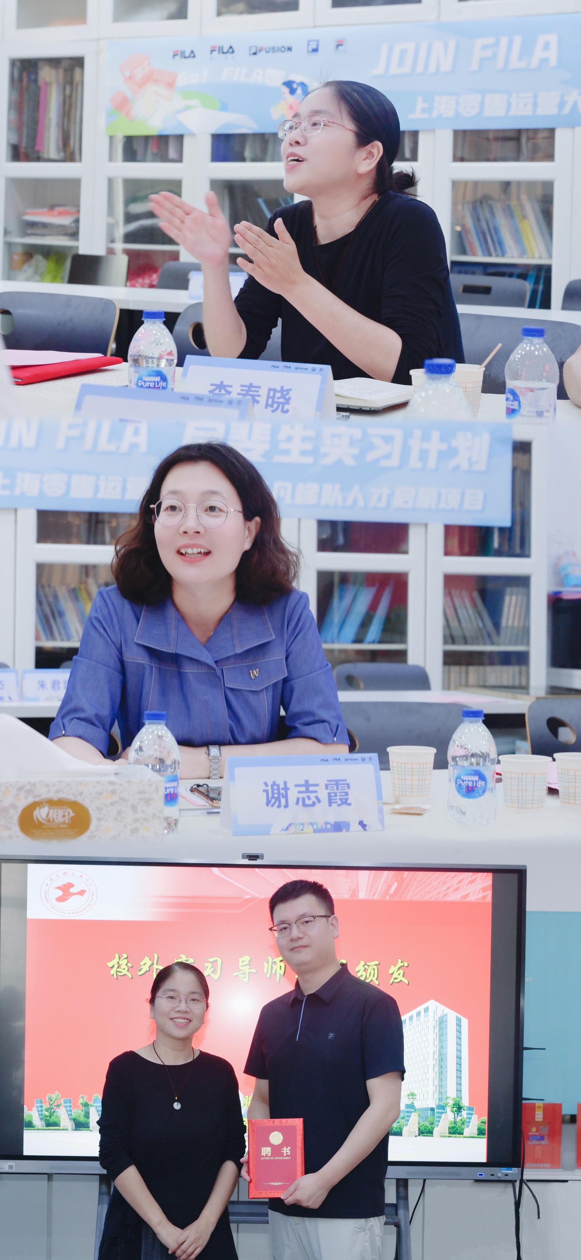 辛斌杰院长首先向与会企业代表介绍了英国上市365的基本情况,并强调学院高度重视企业对于人才的需求以及人才培养的建议,始终契合服装产业的发展趋势,通过强化校企衔接、深化校企合作,将服装设计与工程一流专业和产教融合做好,并且将企业提供的宝贵意见融入到教学和人才培养方案的修订之中,不断探索新时代工程应用型专业人才的培养。曲洪建副院长提到服装设计与工程专业在通过工程教育认证以后一直把培养服装领域的工程师作为专业的人才培养目标,近几年服装设计与工程专业的人才培养质量、毕业生就业情况和专业能力都有了明显提高。本次斐乐服饰有限公司的实习生招募计划将能进一步改善学生理论知识结构,发挥服装企业的实践优势,将服装企业的成熟经验运用到学生培养的全过程。斐乐服饰有限公司上海总经理叶逸凡也对学院近年来的人才培养工作进行了肯定,并同时表达了对高素质人才的期待,为学院下一阶段在人才培养、专业建设、教师实践、学生实习实训等方面提出了宝贵意见。双方还举行了校外实习基地、研究生实习基地签约授牌仪式,并由李春晓副院长为斐乐服饰有限公司上海总经理叶逸凡、上海人力资源经理杜海洋颁发了校外导师聘书。
