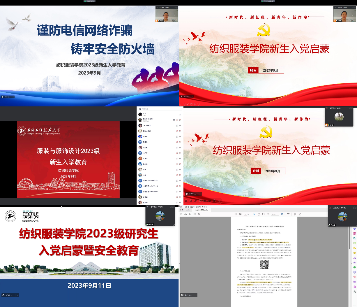 会上就党组织的历史、入党申请程序与条件、入党申请书的撰写要求等进行详细介绍,强调党员的责任使命与光荣优良传统。作为新时代青年,希望2023级新生同学们志存高远,树立远大理想;坚定信念,勇挑使命担当;坚定不移跟党走,攻坚克难,争当榜样先锋。其次会上还针对开学期间高发的网络诈骗、电话诈骗、邮件诈骗等常见诈骗手法进行普及,强调保护个人信息的重要性。