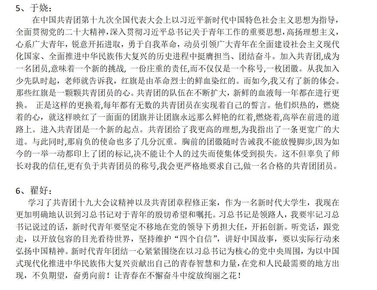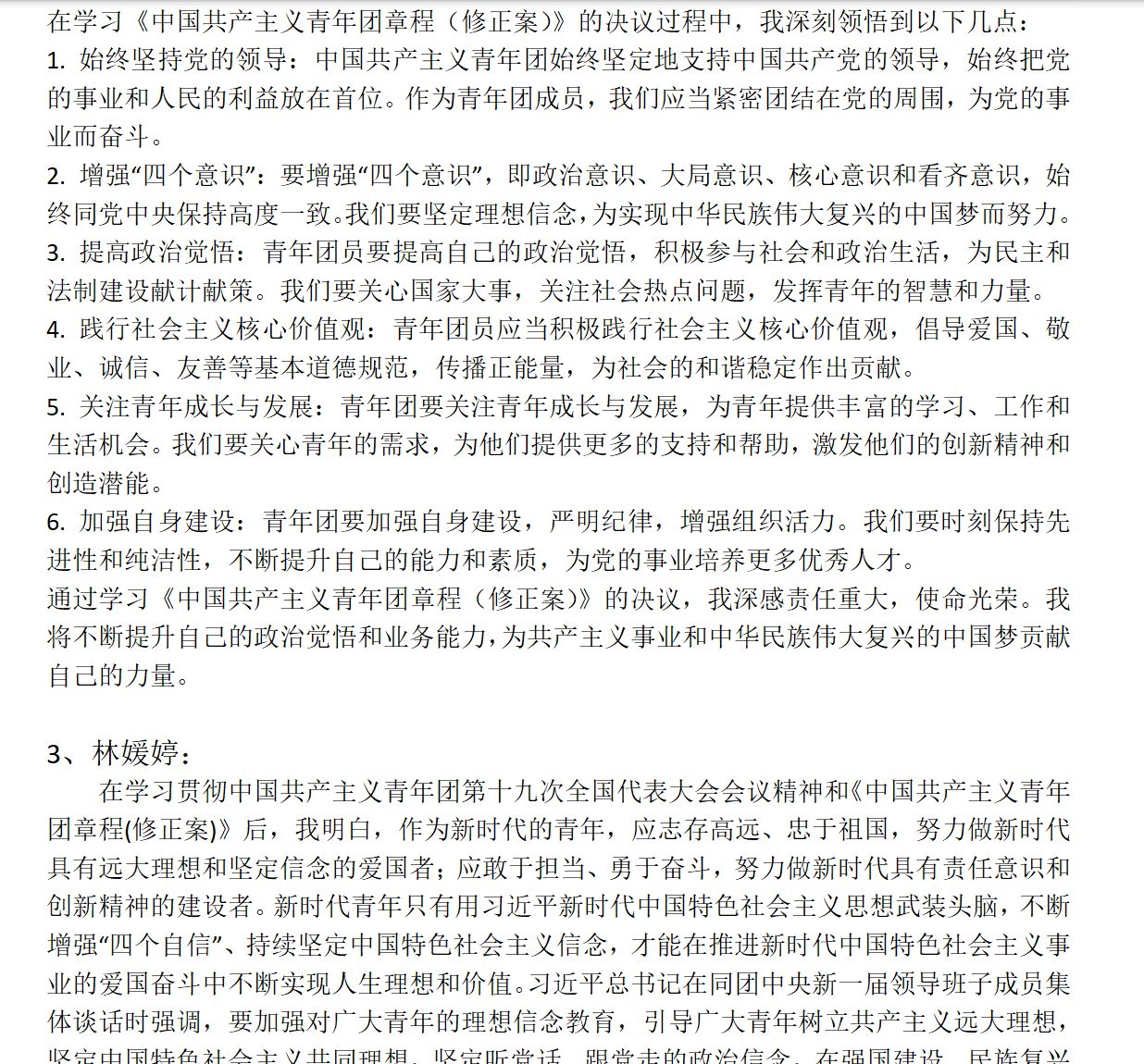 2023年7月14日,0911224团支部对本月团组织生活以在线自主学习为主,团支书将共青团十九大召开前后的相关报道、大会报告(全文)、《共青团章程(修正案)》等文章发给团员们供参考学习,同时,团支书创建了接龙,请所有团员谈学习感悟。本次团组织生活以学习理论知识为主,对团员青年进行了思想教育,加强团员对于团的章程的认识,要求团员坚决维护团的章程,遵守团的章程,牢记自己作为一名团员的义务和责任。新时代青年应将理论付诸于实践,艰苦奋斗是团员青年的代名词,为实现中华民族伟大复兴的中国梦不懈奋斗。